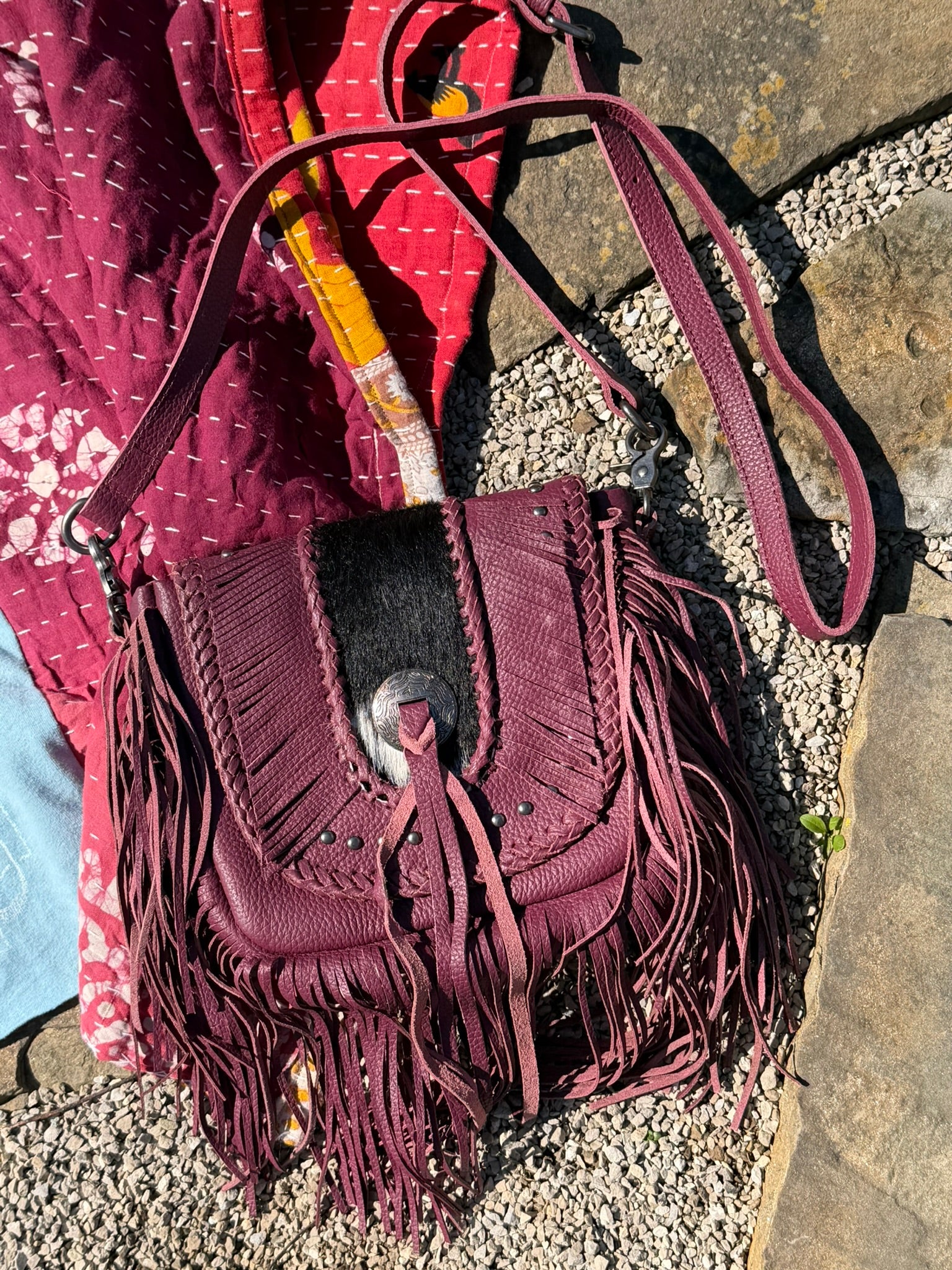 Cierra Lauren is proud to present the fabulous Montana West Genuine Leather Hair-On Cowhide Fringe Bohemian Crossbody. This bag features amazing western fringe, cow hide trim, beautiful studded details, and a concho design.