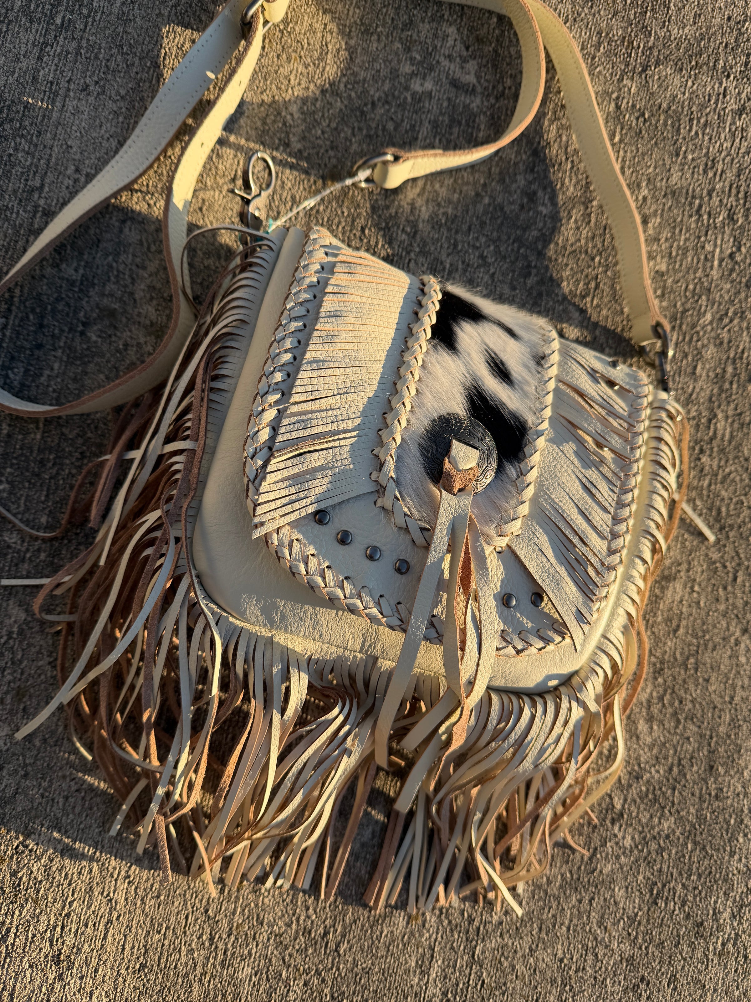 Cierra Lauren is proud to present the fabulous Montana West Genuine Leather Hair-On Cowhide Fringe Bohemian Crossbody. This bag features amazing western fringe, cow hide trim, beautiful studded details, and a concho design.