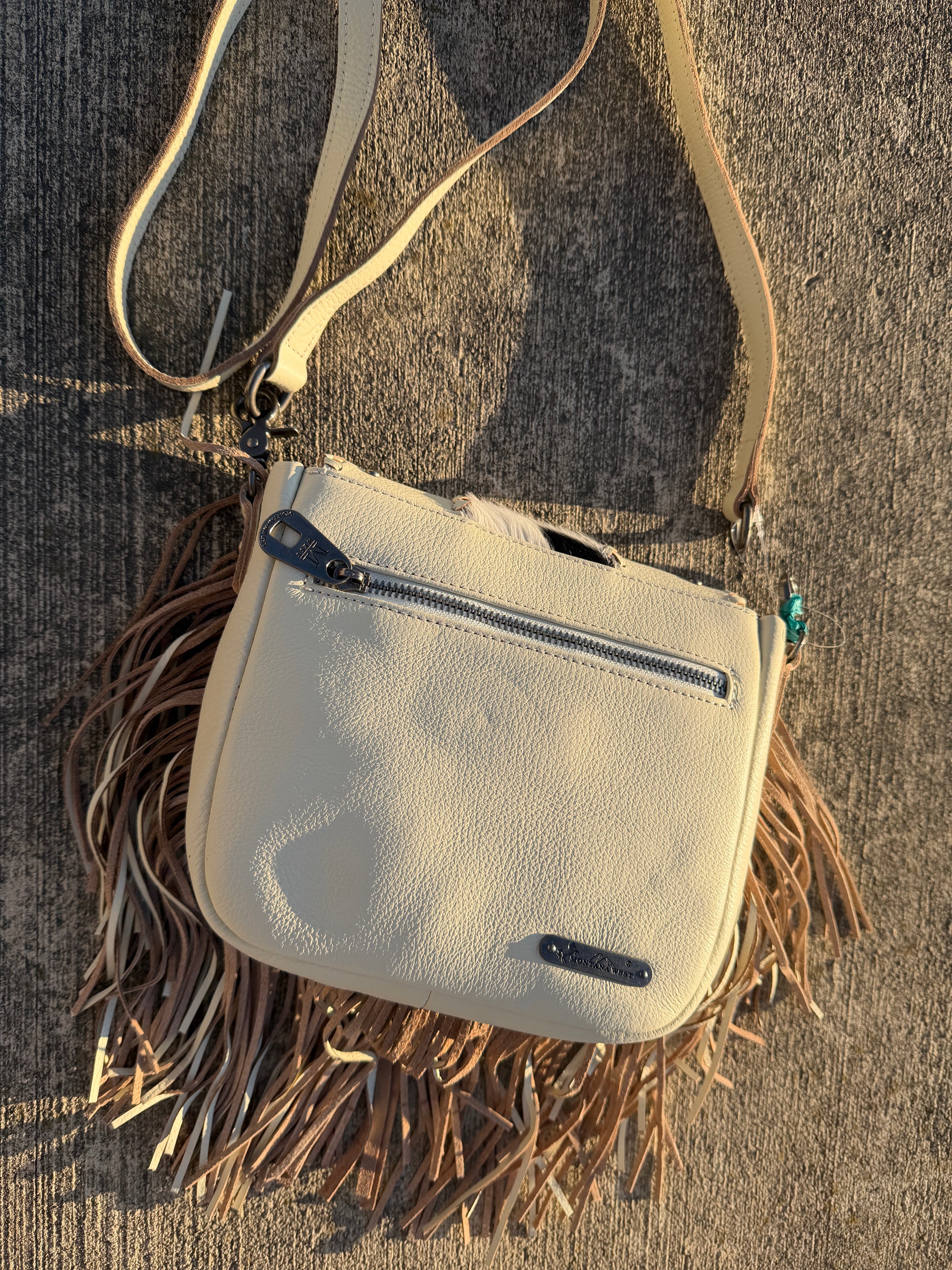 Montana West Genuine Leather Hair-On Cowhide Fringe Bohemian Crossbody - white